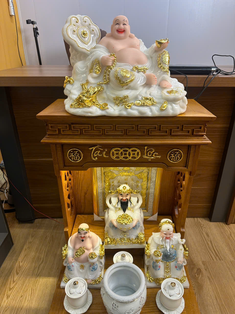 2. Trang trí bàn thờ Thần Tài với các vật phẩm tài lộc