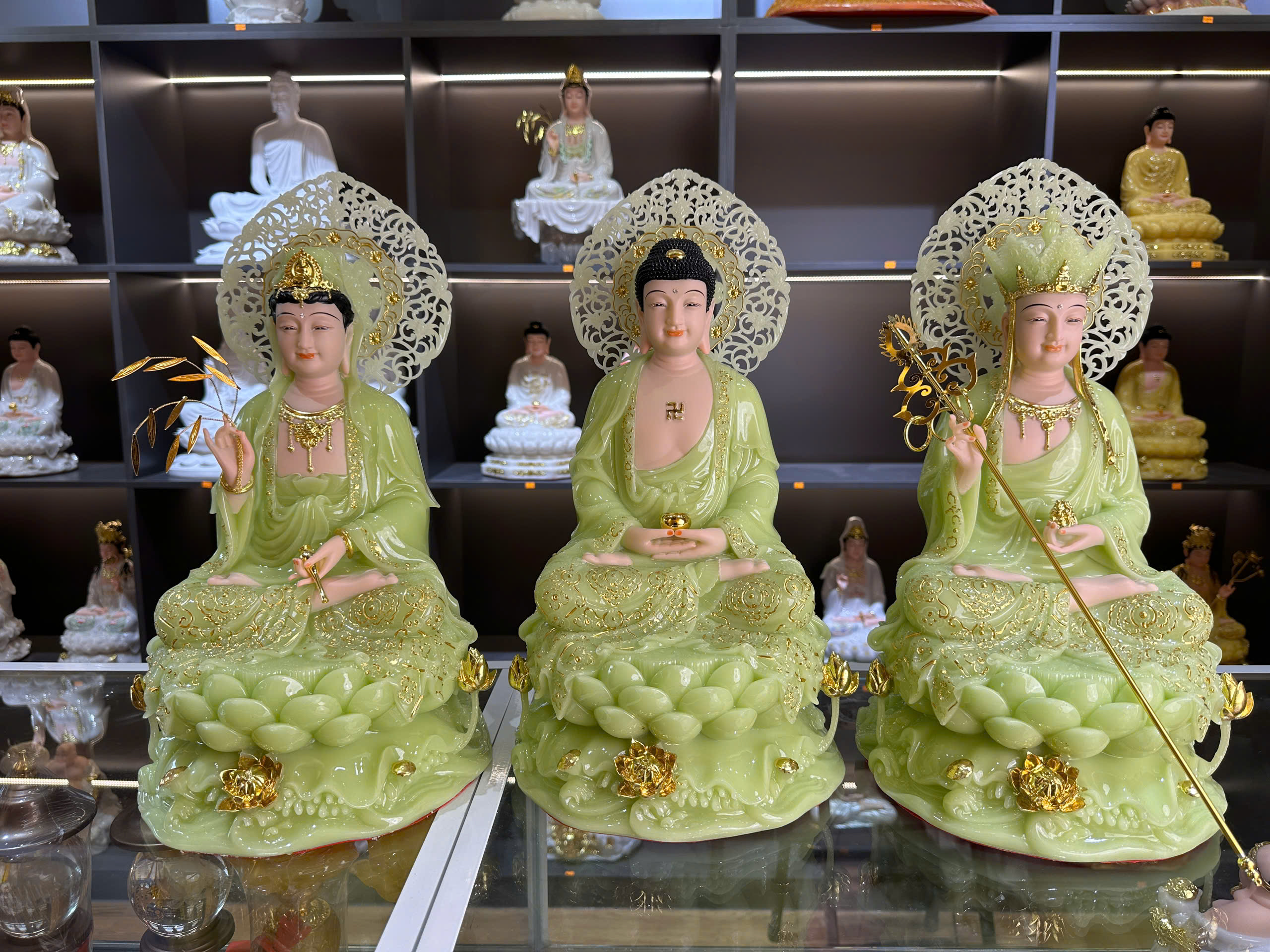 Diện tượng đẹp. Toát được tướng hảo cũng giúp cho người đảnh lễ chiêm bái sinh tâm hoan hỉ và kính ngưỡng. Điều này rất tốt. Ngoài ra, tượng làm bằng bột đá có độ cứng đồng đều, độ bền cao. Tượng lại có sơn phủ nano cao cấp, giúp cho việc thể hiện diện tượng càng tốt hơn. Thờ tượng Phật về bản chất là giáo dục. Quan trọng là người thờ nương tựa vào hình tướng của Phật để tu hành, nhắc nhở mình mỗi ngày. Ta Bà Tam Thánh Bột Đá Thạch Anh.